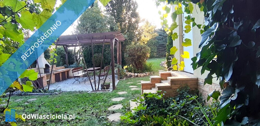 Bardzo ładnie zagospodarowana jest działka (m.in. pergola z murowanym grillem, studnia).